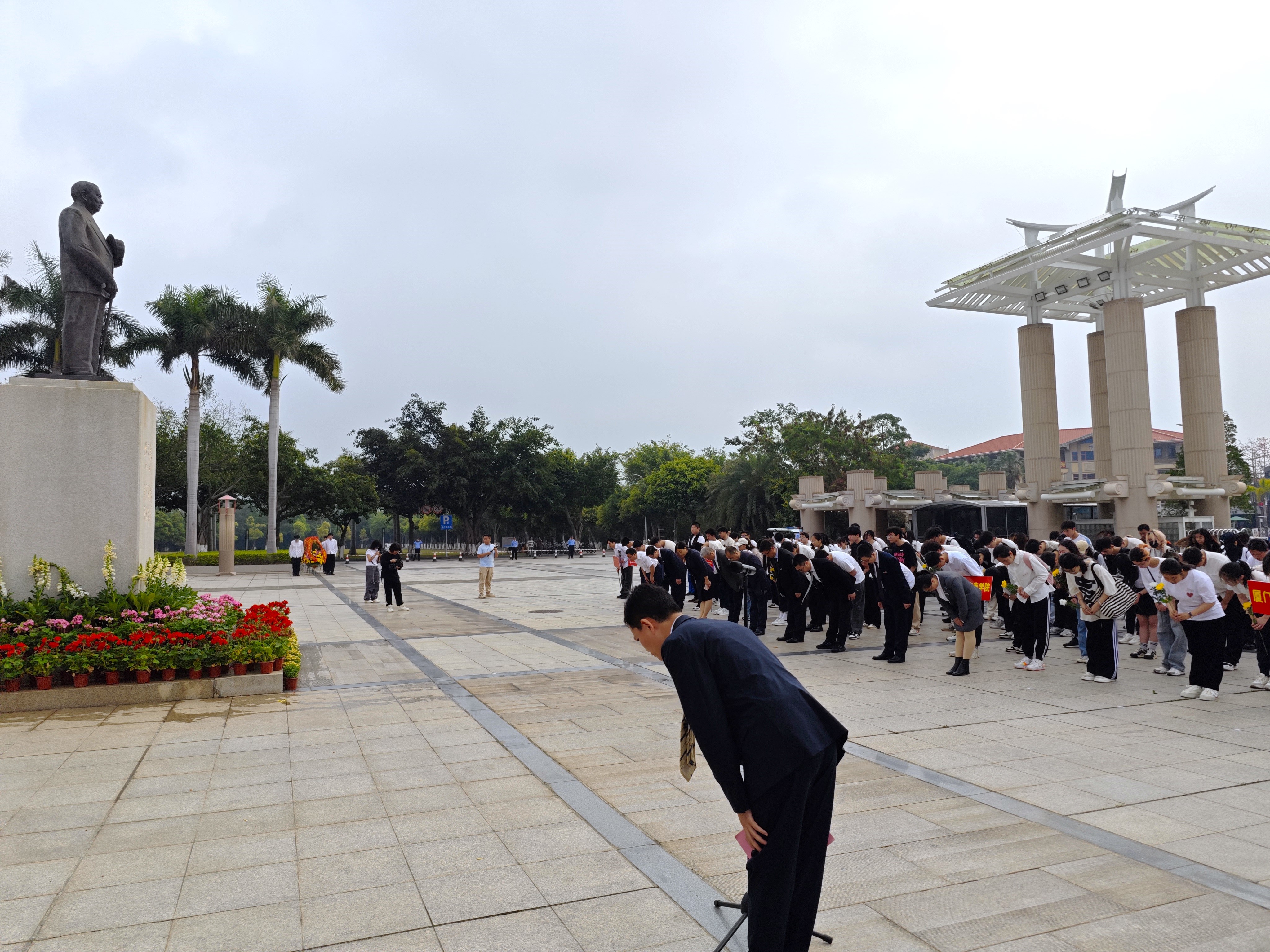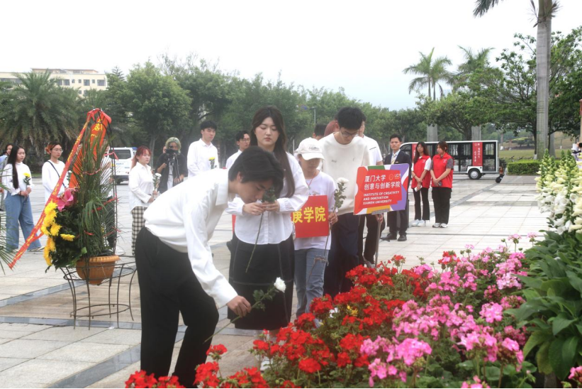 时值清明,翠柏凝春。4月4日,校区组织各单位、附属中小学师生代表200余人,向陈嘉庚先生、高捷成烈士铜像敬献花篮,表达深切的缅怀和敬意。