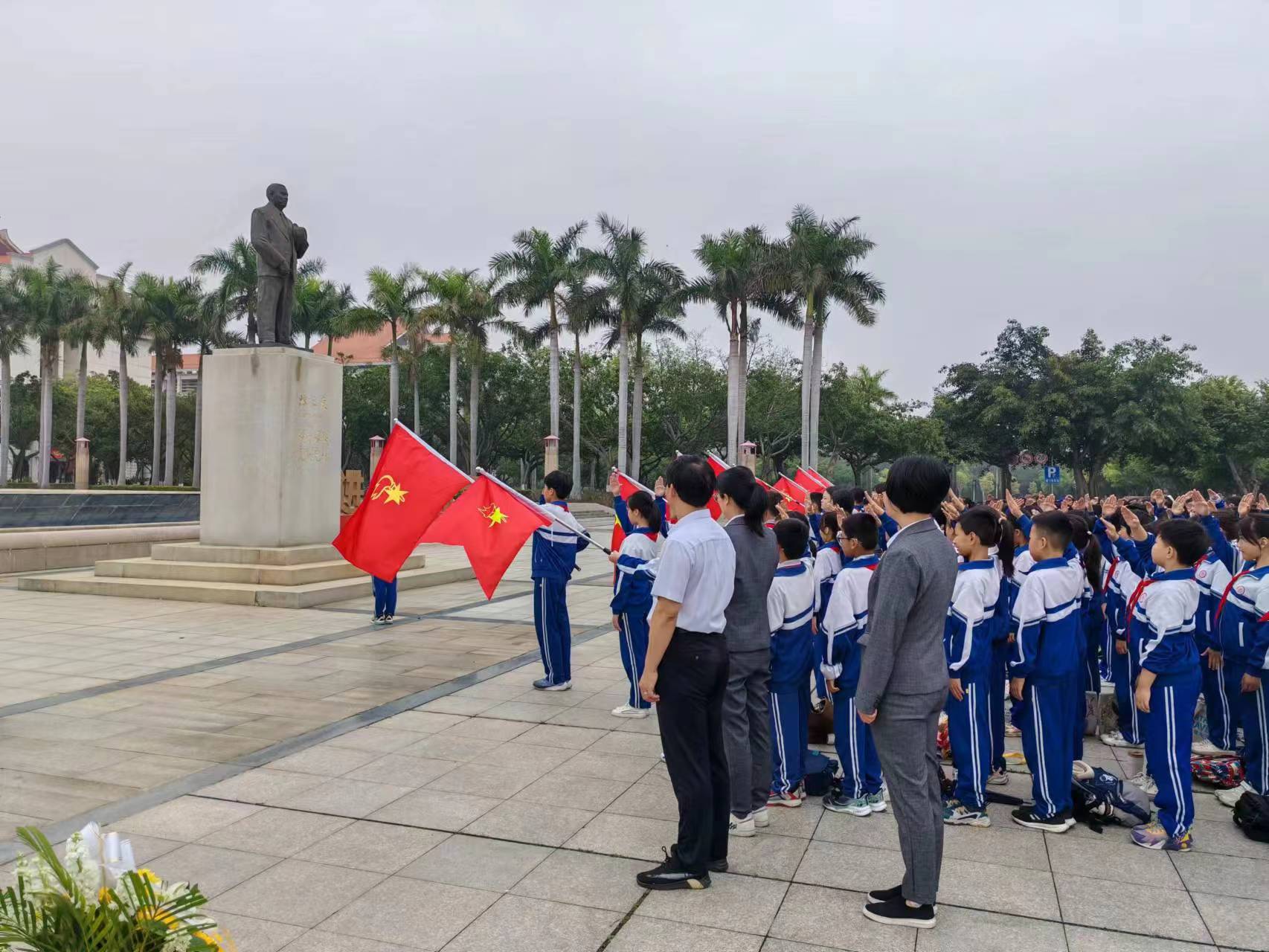 清明前夕,附属实验小学组织师生代表前来校区,向陈嘉庚先生、高捷成烈士铜像敬献花篮,缅怀追思。