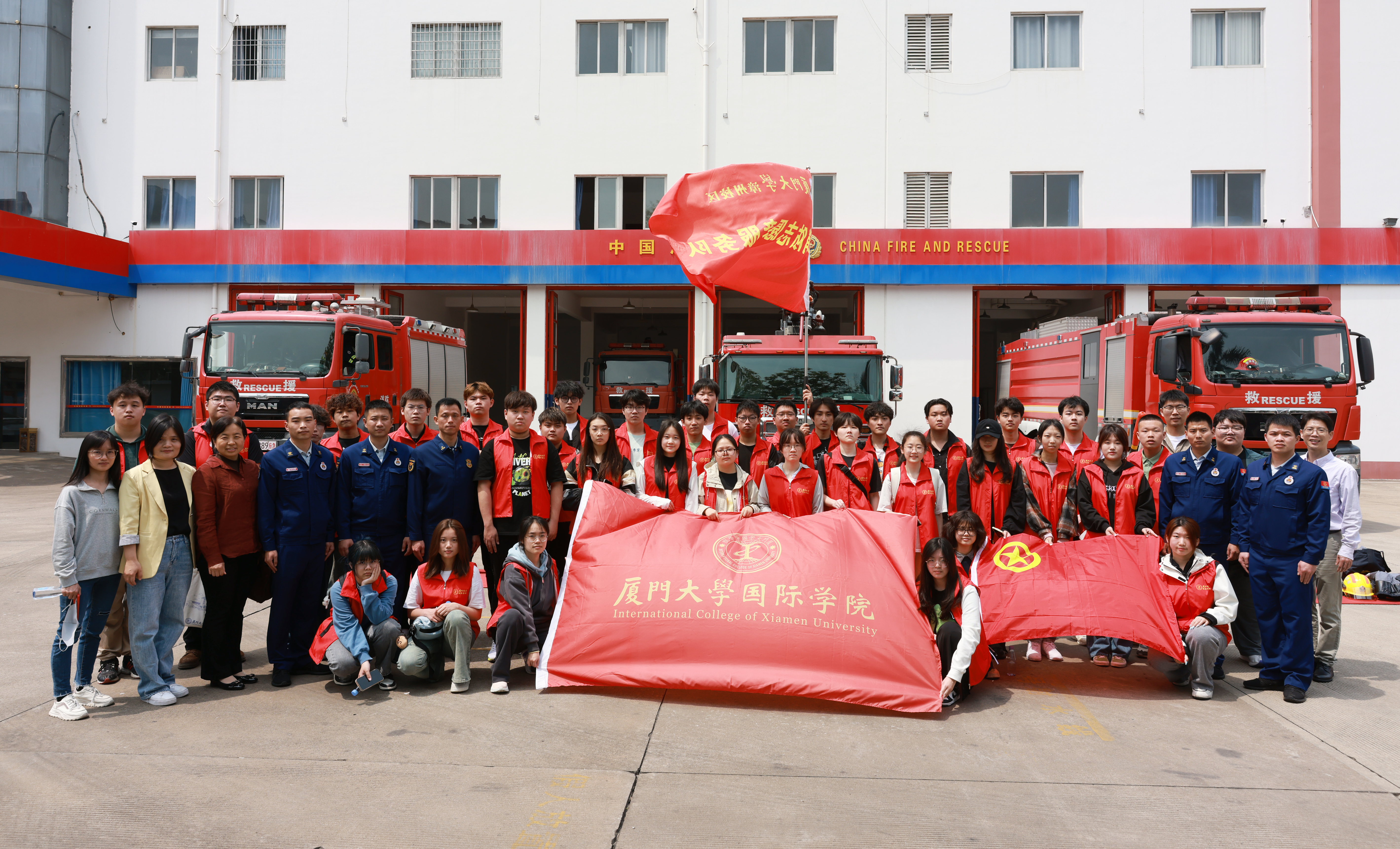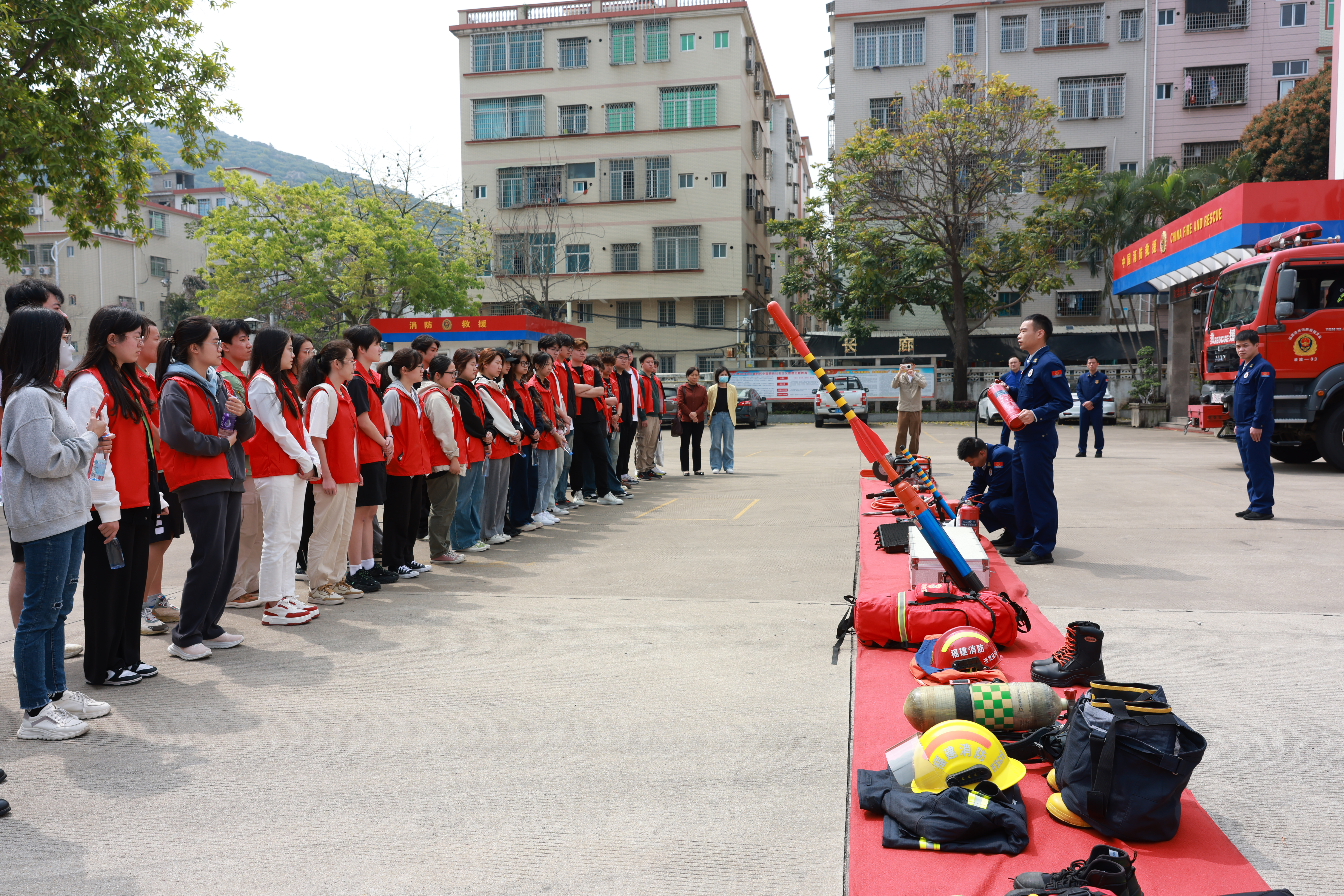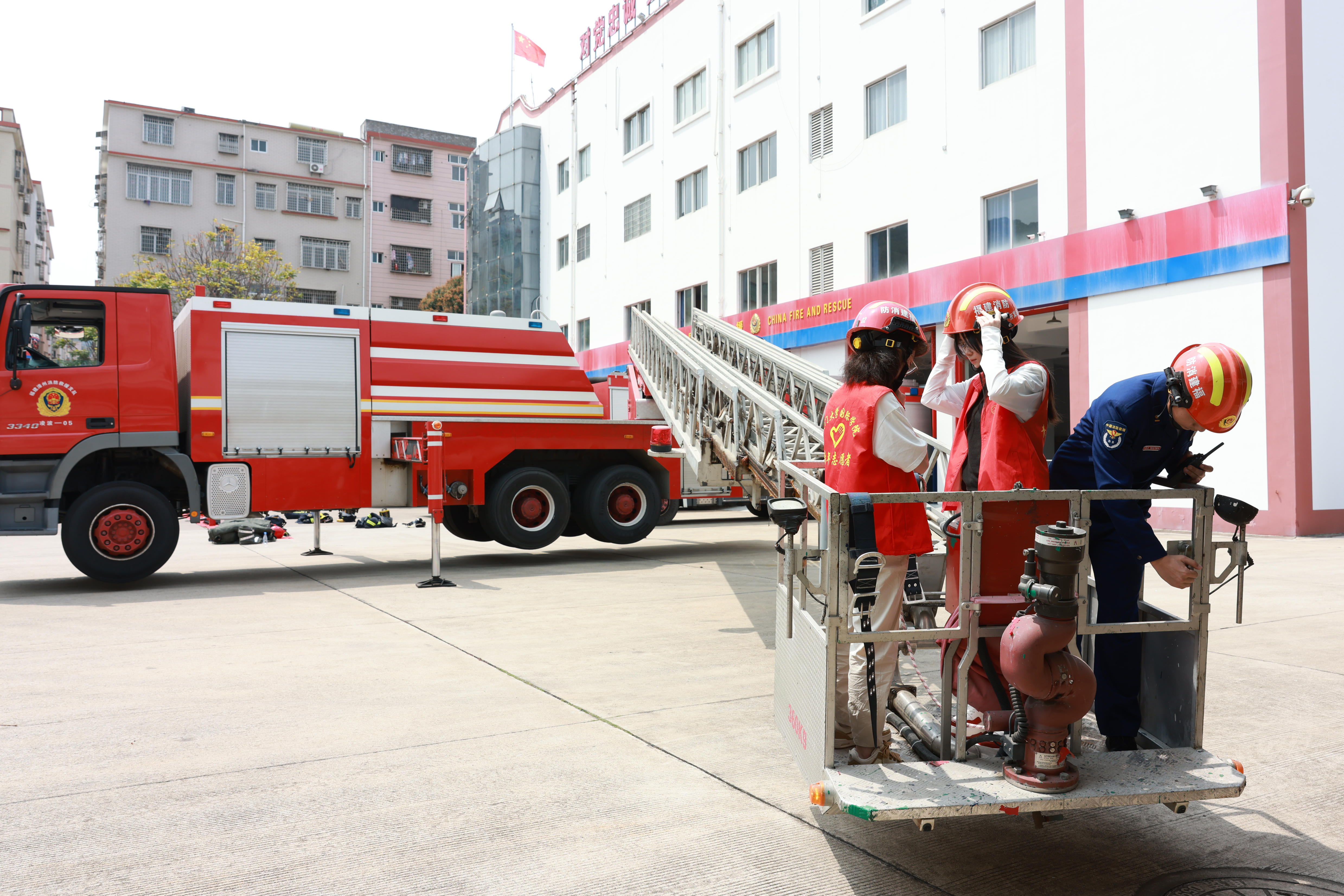 同一时间,国际学院组织40余名师生代表前往漳州开发区消防救援站参观学习。消防官兵们首先向师生们普及有关消防安全的基本知识,逐一讲解灭火器、指环切割器、救生抛投器等消防器材和抢险救援等设备的用途及使用方法。同时,消防官兵们还现场演示了如何正确使用灭火器、穿戴消防战斗服和空气呼吸器,并指导师生们体验穿戴战斗装备。随后,大家一起观摩了消防救援队的日常训练,消防战士现场演示绳索攀爬、高空索降、云梯搭救等。最后,在消防队员的指导和保护下,师生们积极体验攀高岩、高空点降、速降及乘坐云梯等作战技能。