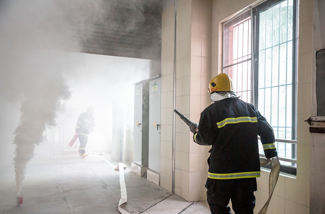 后厨发生火情后,烟雾蔓延至用餐区。消防报警系统烟感探头即刻感应并报火警;餐厅员工发现火情后立即呼救并摁下二楼通道的消防手报,同时通知消控室并报火警 119 及餐厅负责人,随后迅速组织疏散。消控室在接到现场人员的火灾确认后,立即启动应急程序,并通过消防广播向餐厅播放火灾疏散警报和注意事项。保卫部迅速组织微型消防站、校卫队员等力量,赶赴现场参与灭火、疏散和维护秩序等工作。火情很快得到了控制。整个演练过程进行顺利。