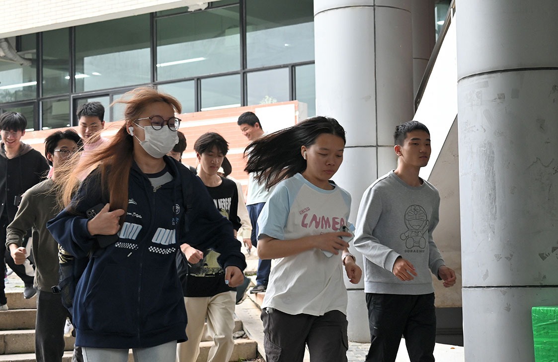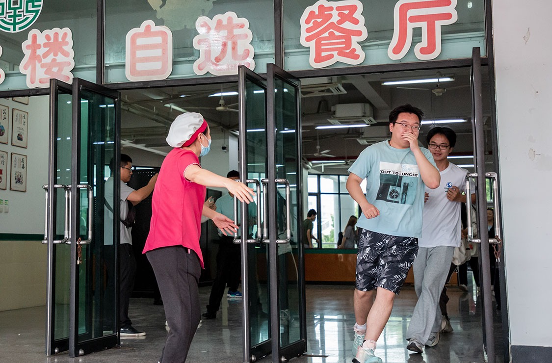 4月4日下午,学生餐厅消防疏散逃生演练在北区餐厅进行,演练模拟了餐厅发生火情之后,后厨工作人员、用餐师生进行紧急疏散的场景。