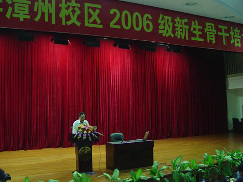 11月16日下午2点30分,厦门大学漳州校区2006级新生骨干培训启动仪式在校区主楼二楼报告厅举行。校长助理、漳州校区党工委书记、管委会主任黄如彬,校区党工委副书记谢银辉,校区学生园区党总支书记、学生办主任郑建华,学生办副主任林盛铨,五个学生工作站主任、团委书记及全体辅导员参加了启动仪式。