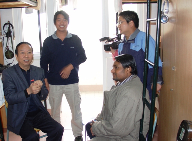 巧合的是,黄如彬一行在走访男生集中住宿的囊萤园区宿舍时,遇到了一名正与国内生交流的印度留学生。黄如彬与这名印度学生亲切交谈,询问印度留学生在校区的学习生活情况,并通过他向校区全体印度留学生表达亲切问候。