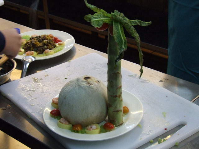 比赛在热烈的气氛中开始,从初赛中脱颖而出的12队选手进入决赛。其中,最引人注目的是12号来自印度的两位选手了,她们的主厨只有17岁,但学习烹饪已经有三年多,她们在决赛中准备的两道菜是Tomato Rice 和 Potato Fry,现场播放印度歌曲为她们加油。