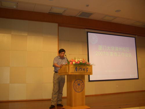 5月31日下午,漳州校区在主楼一楼报告厅召开2007年宣传工作会议。校长助理、校区党工委书记、管委会主任黄如彬,校党委宣传部副部长戴岩、校区管委会副主任郑树东,中国电信龙海分公司副总经理朱旭伟,医学院党委副书记刘梅,校党委宣传部秘书、校新闻中心主任楼红英,《厦门大学报》主编卢明辉,校党委宣传部洪春生,校区各部门、各单位负责人,校区宣传报道组全体成员以及学生代表参加会议。