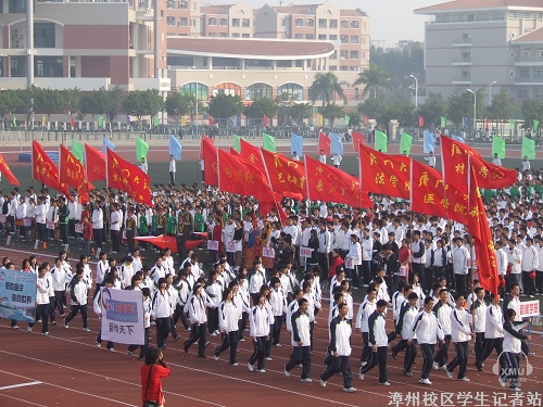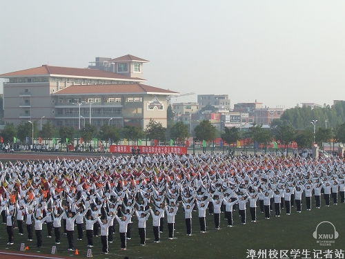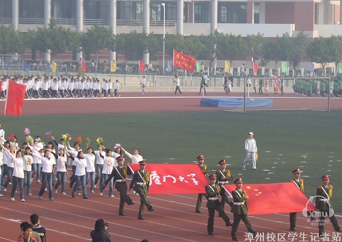 12月7日上午,我校2007年运动会开幕式在漳州校区北区田径场隆重举行。校领导朱崇实、陈力文、陈国凤、辜芳昭、孙世刚、邬大光、赖虹凯、白锡能,校长助理庄宗明、王巧萍,嘉庚学院院长王瑞芳,机关各部处负责人、各学院党政领导,师生代表等出席了开幕式。开幕式由校体育教学部主任林建华主持。