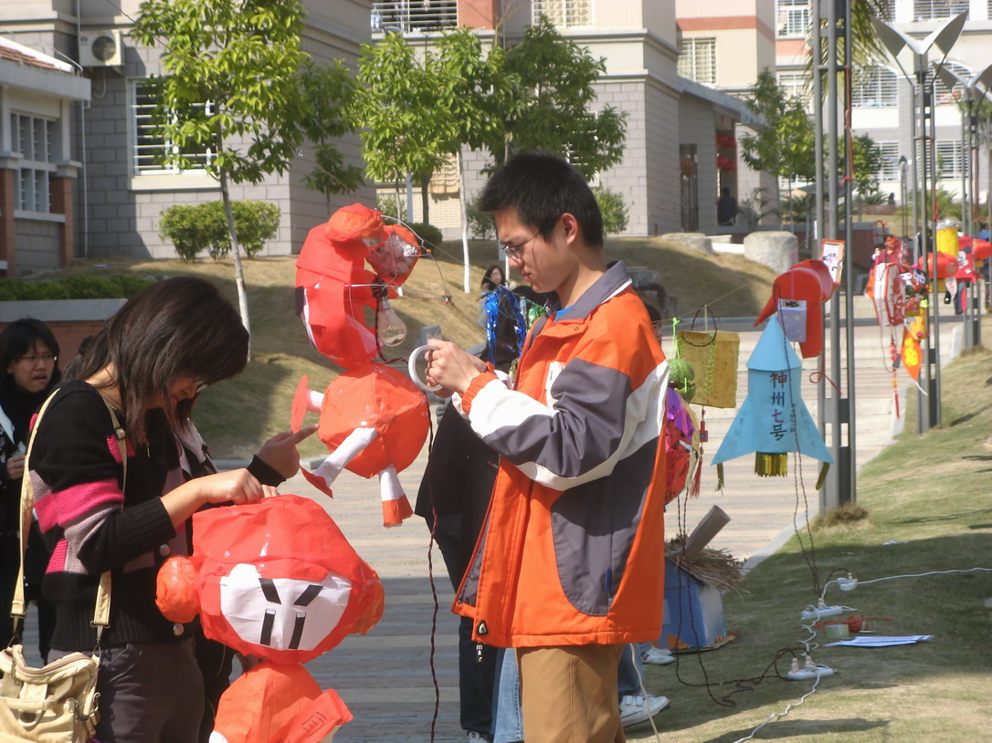 2月21日元宵佳节晚上,漳州校区在北部生活区举办了自制手工灯笼元宵游园庆祝活动。漳州校区学生办副主任林盛铨,囊萤学生工作站主任张琥、团委书记张清榕为游园会剪彩。本次游园会由漳州校区团工委主办,囊萤学生工作站承办。