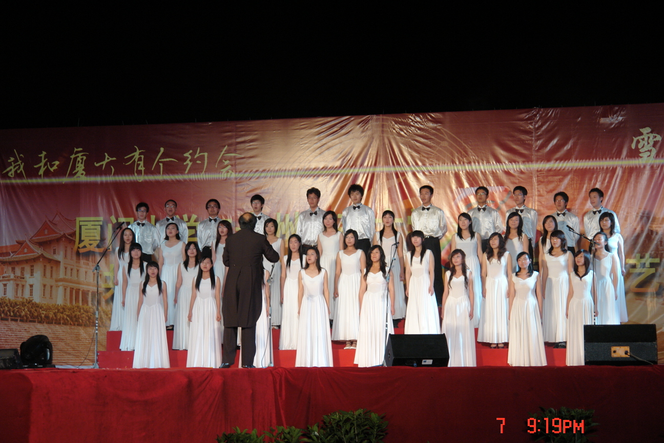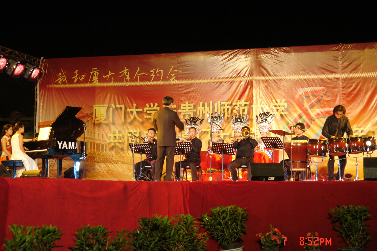 八十七年的艰苦奋斗,八十七载的风雨兼程,每一个到场的厦大人和着悠扬的旋律,挥舞着手中的荧光棒,沉浸在浓厚的喜庆氛围之中,“厦门大学生日快乐”的欢呼声将当晚的校区田径场变成欢乐的海洋。远道而来的贵州师范大学演出慰问团带来了精彩节目,饱含浓郁民族风情让人难以忘怀,无论是展现苗族传统的古筝独奏《四月八》、歌曲《霸王别姬》、相声《师徒乐》,还是《阿咪朵》里那群欢快舞蹈的女孩,以及由他们自创的合奏《圣火之舞》,让现场观众耳目一新。南强学子人才辈出,活力四射的健美操、舞蹈《同行》、武术表演《刺》、电小提琴重奏、美声《祖国不会忘记》以及舞蹈爵士芭蕾,也让现场观众大饱眼福。最令人难以忘怀的无疑是诗歌朗诵《大雪无情人有情》,演员们用一段朗诵和一首歌曲仿佛带我们一同走进了全国人民众志成城,抗击那场罕见雪灾的感人场面。