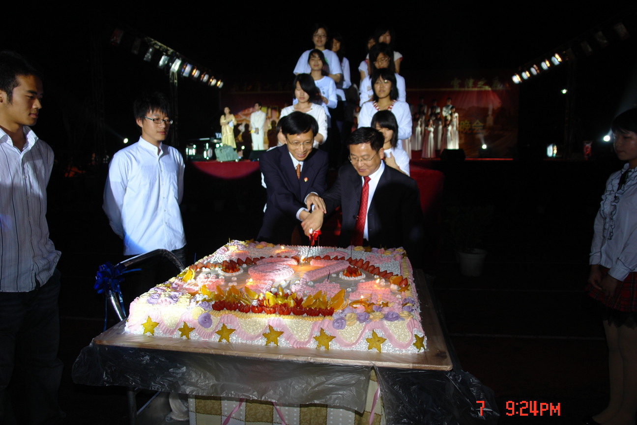 晚会在全体师生起立齐唱《厦门大学校歌》的歌声中接近尾声,20名和母校同一天生日的同学手捧蜡烛将一个精心制作的生日蛋糕迎上舞台,校党委副书记辜芳昭和贵州师范大学副校长蔡永生共同切下生日蛋糕,全体观众们异口同声饱含深情地 “厦门大学,祝您生日快乐” 声将晚会推向最高潮。
