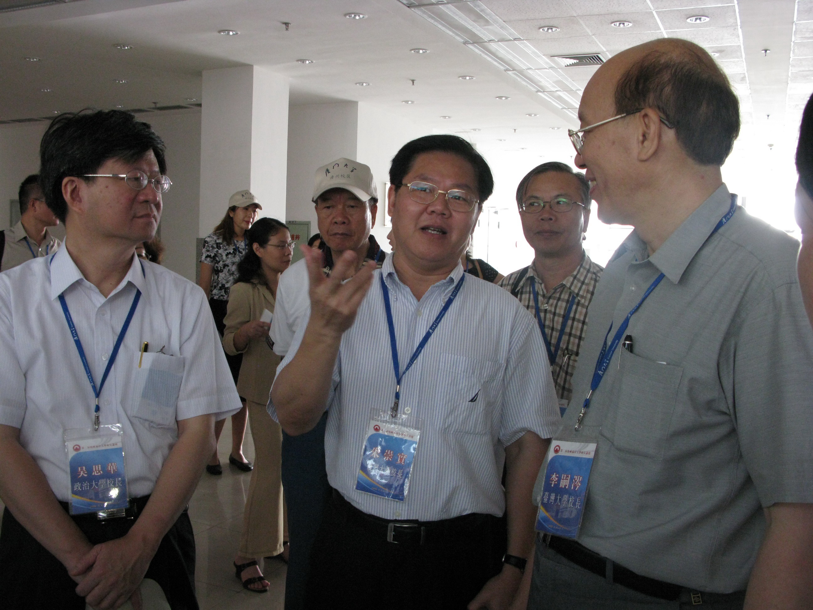 部分来宾参观了主楼群4号教学楼,朱崇实介绍了教学楼使用概况及建筑的设计细节,台湾大学校长李嗣涔对我校的建筑风格表示赞赏,并认为这里面包含的许多闽南特色“和台湾是一样的。”