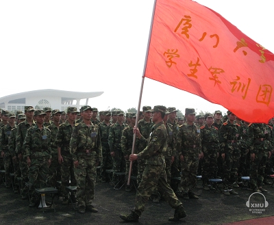 厦门大学党委副书记、学生军训工作领导小组组长辜芳昭向军训团授旗