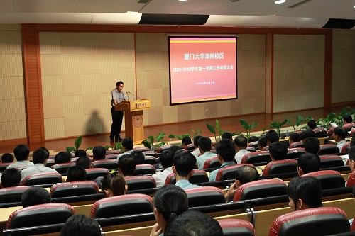 9月8日下午,漳州校区2009-2010学年第一学期新学期工作动员大会在校区主楼一楼小报告厅举行。校区党工委副书记梁卫中,校区各单位各部门、嘉庚学院、国际学院工作人员200余人参加会议。会议由校区办公室主任刘立荣主持。