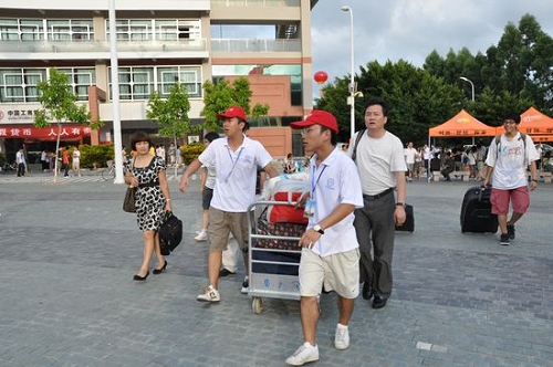 由于正式的报到注册时间为9月11日、12日两天,因此10日下午的新生数量并不多,但志愿者们的热情丝毫没有退减:新生和家长们一下车,志愿者就热情的涌上来帮忙搬运行李、提供咨询,这让新生们倍感温馨,一名家长激动地说:“顿时觉得被热情包围了!”