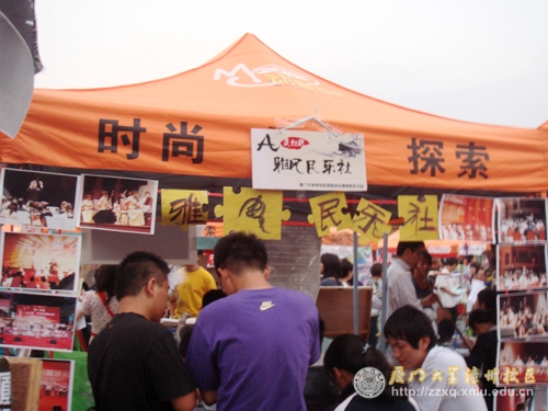 各个社团为招纳新成员费尽心思,海报、地标轮番上阵。花韵手工协会将社员的手工作品进行展览,交谊舞协会的成员们翩翩起舞,雅风民乐社的同学则进行现场教学。