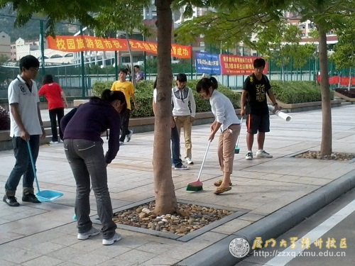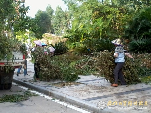 24日上午,台风影响渐渐退去,校区又恢复了往日的平静,校区物业部门、保卫办、资产后勤办等单位工作人员,外文学院、建筑与土木工程等学院的学生志愿者立即投入紧张的灾后恢复重建工作中。