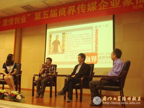 我校是本届巡讲活动中继四川大学、中国科学技术大学、合肥工业大学之后的第四站。活动邀请到了深圳三十到五十电子商务公司CEO龚文祥、特步(中国)有限公司副总裁叶齐、明基电通中国营销部人力资源总监李明伦三位商业巨子作嘉宾,与现场的同学们一起分享他们从业生涯中点点滴滴值得铭刻的回忆。
