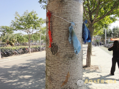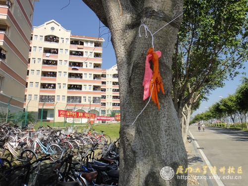 有的在树木之间挂上宣传标语,有的在主干道树上挂上彩色的气球,有的在地面贴上醒目的地标,宣传语很醒目,彩色气球很漂亮,活动办得也很成功。可活动结束后,宣传语和气球依旧挂在树上,地标也无人清理,经过风吹雨打,气球瘪了,宣传条幅烂了,地标褪色了,与校区优美的景致极不和谐。