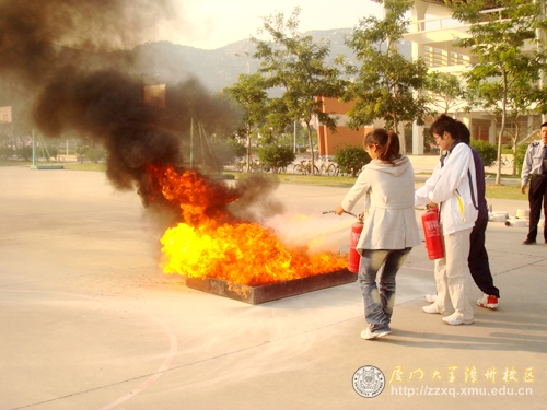孙俊逸向同学们讲解干粉灭火器的使用方法,在场同学进行了相应实践操作。何丽萍表示,同学们的表现可圈可点,不过还是有些灭火要领没有掌握。参与演习的新闻传播学院的周秋萍同学说:“灭火真不是件容易的事。以往看灭火觉得很轻松,但实际上灭火器很重,也不好掌握灭火棒方向。”