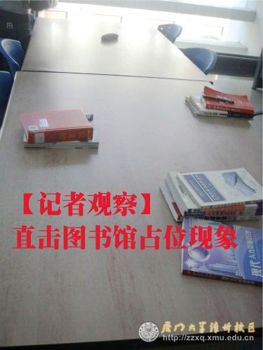 漳州校区于图书馆早上八点整开馆,晚上二十二点整闭馆,在此期间,有许多同学用各种方式占图书馆内的座位:放书占座位,放杯子占座位,有时一支笔也会成为占座工具,还有同学竟伸腿占用两把椅子……而最令大家烦恼的是,许多同学占完座位后,一去不回,霸占空位,后来的同学只能面对满桌的课本却不见人影;在图书馆一楼的多媒体区,总有许多不下载多媒体资料的同学,利用多媒体桌较大的空间进行自习,此举令许多急需下载网络资源的同学们无可奈何。公共事务学院的陈同学说“看到占座行为时,心里很生气,但是我们都是学生所以不好意思说,希望能有人管管”;而医学院的江同学则回忆到,有一次,他在一个已经放了书的座位上学习,可从早上到中午,放书的人一直没回来;对于考试周的占座现象,有同学说“已经习惯了”。