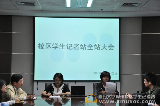 12月3日中午,校区学生记者站全站大会在主楼群3号楼909会议室召开。记者站指导老师,校区办公室副主任蔡励元、校区办公室邱媛、赖珊珊及记者站的全体新老成员出席了本次会议。会议由邱媛主持。