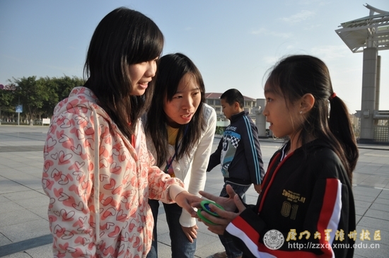 志愿者张丝丝说:“我小时候也很喜欢玩溜溜球,好久没有玩了呀。”