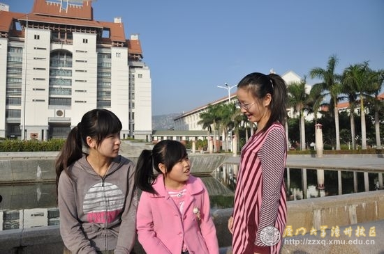 丽新小朋友与自己挑选的大姐姐一同在主楼前合影