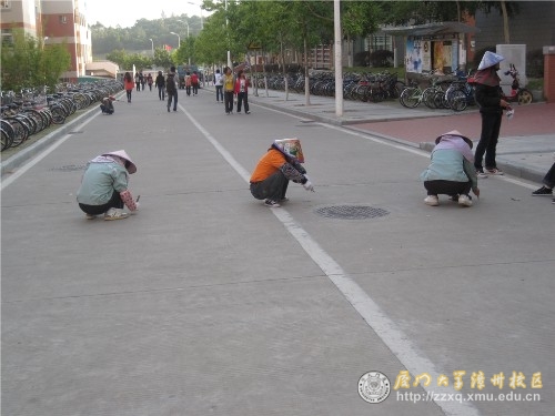 保护环境不是她们的“专利”,作为一名厦大学子,这更是我们的义务和责任。也许不需要我们也俯下身清洗地板,但是最简单随手的小动作,身边的小细节,就能体现我们对环境的一份关心和大学生,甚至作为一个社会人应有的责任感,以及对他人劳动成果的尊重。