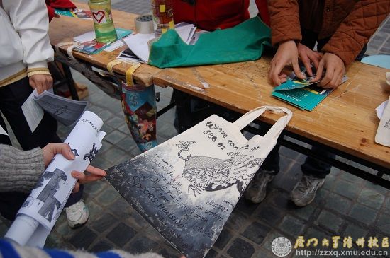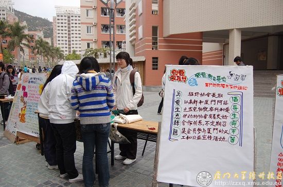 3月15日,厦门大学绿野协会校内宠物爱护系列活动“宠物邀您行”的第一个子活动——第三届环保袋设计大赛在漳州校区北区食堂门口进行现场报名活动。