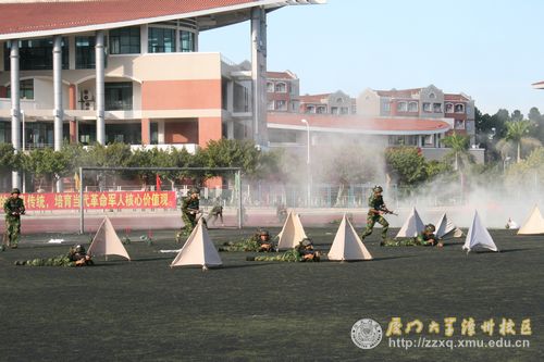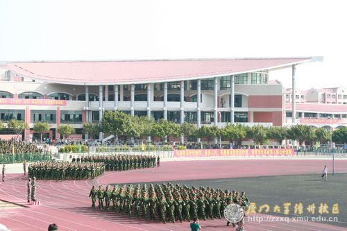9月30日上午,2011级学生军训结业典礼在漳州校区田径场隆重举行。中国人民解放军某部部队政委,中国人民解放军漳州军分区副政委,中国人民解放军驻厦门大学选培办主任刘和孝,我校校长朱崇实、党委副书记陈力文,党委副书记、纪委书记陈国凤,副校长孙世刚、李建发、张颖、邬大光、赖虹凯,校党委常委白锡能,校长助理、漳州校区党工委书记、管委会主任王巧萍,校长助理韩景义、叶世满、李初环、陈应鑫,厦门大学嘉庚学院院长王瑞芳,院常务副书记、副院长鲁同安出席典礼,校军训工作领导小组成员,机关部处负责人,学院党政领导,承训部队官兵以及全体军训带队老师和参训新生参加了典礼。典礼由漳州校区党工委副书记、学生军训工作领导小组副组长、军训团政委高忠华主持。