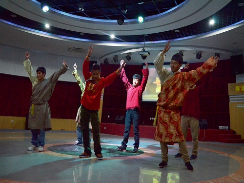 在欢快喜庆的气氛中,校区学生办庄曦主任与各院辅导员老师、学生代表一同参加了活动。晚七时,晚会以一首《慈祥的母亲》拉开了序幕。藏语版的《姑娘》伴随着表演者深沉的吉他敲打声和轻灵的音符,让现场师生都沉浸在曼妙的歌声中。新闻传播学院辅导员黄文老师为大家带来了一首《天路》,他首先向藏族同学表达了新年祝福,并鼓励大家努力学习“走遍中国,走向世界”,赢得了现场观众的热烈掌声。一起参加活动的非藏族同学表示,印象最深刻的莫过于藏族同学表演的原创舞蹈,他们的舞步豪放却不失优雅,张扬却不失秩序,伴随着优美的背景音乐,让他们领会到了藏族艺术的魅力。