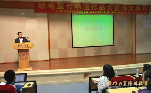 3月28日下午,禁毒宣传动漫作品大赛颁奖典礼在校区小报告厅举行。此次活动由招商局漳州开发区禁毒委员会、漳州市公安局开发区分局主办,厦门大学漳州校区团工委协办,厦门大学软件学院承办。招商局漳州开发区管委会副主任、政法委书记、禁毒委员会主任张逸南,漳州市公安局开发区分局副局长邱勇、刑侦大队副大队长王朝晖,厦门大学软件学院党委副书记刘钟南等出席了颁奖典礼。