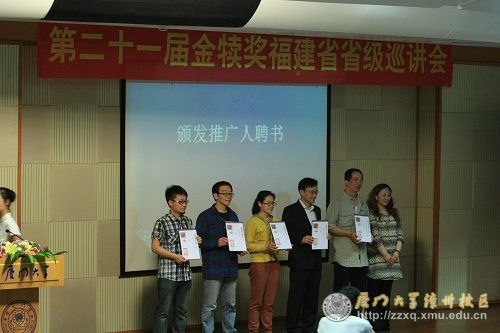 4月21日下午,由新闻传播学院承办的第二十一届时报金犊奖福建省省级巡讲会在漳州校区小报告厅举行。出席本次巡讲会的嘉宾有时报金犊奖组大陆地区项目负责人王欢女士、旺旺集团福州分公司李文阁总监、睿狮广告传播首席创意长陈耀福先生、我校新闻传播学院副书记叶虎等。除了我校的学生外,厦门理工大学的学生也参加了本次的巡讲会。