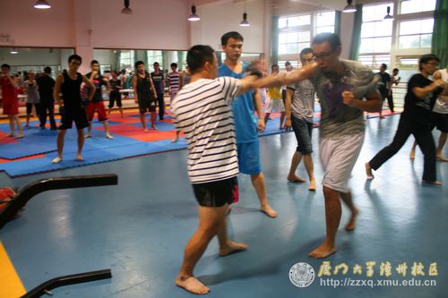 为帮助同学们更好的了解散打,促进同学们积极参加体育锻炼,强健体魄,漳州校区保卫办利用资源优势举办散打培训班,教授同学们散打的基本知识。