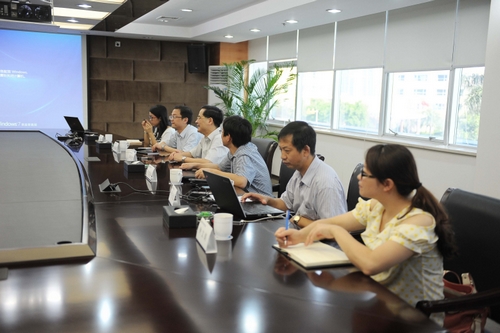 卢英华从资产经营有限公司概况、国家大学科技园规划、产业技术研究院建设、科技成果转换模式与实例四个方面介绍了我校科技成果转化平台的情况。周涵韬从学科建设、师资队伍、科技工作的定位、整体目标和战略、科研平台、科技成果、合作方式、学科产业领域等方面全面介绍了我校科技概况。尹应武教授全面介绍了“风眼”技术与高效节能装备项目成果的进展情况。
