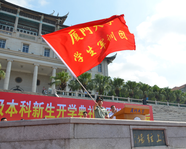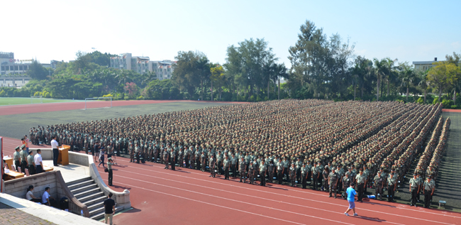 8月28日上午,2014级本科生新生军训动员大会在思明校区上弦场隆重举行,为期15天的2014级学生军训正式拉开序幕。校党委副书记、学生军训工作领导小组组长林东伟,承训部队全体官兵,军训工作领导小组成员,学校有关部处,各学院领导,军训团教导员、指导员和全体参训同学等参加动员大会。教务处处长计国君主持动员大会。