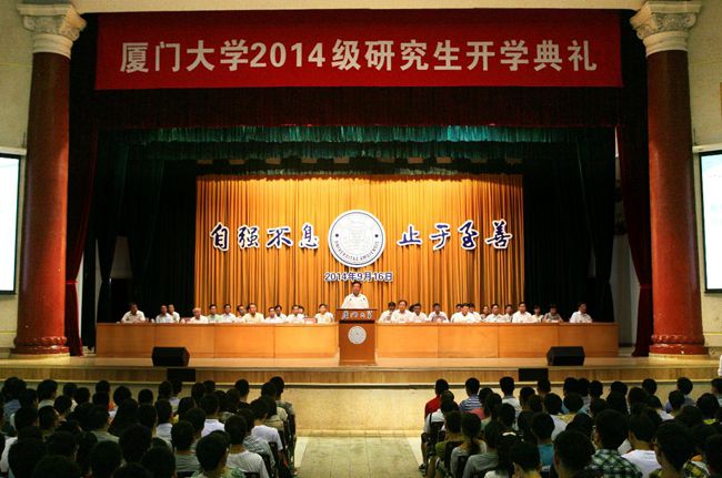 9月16日上午,厦门大学2014级研究生开学典礼在建南大会堂隆重举行。校党委书记杨振斌、校长朱崇实,校党委副书记、副校长李建发,校党委副书记、纪委书记赖虹凯,副校长杨斌,文科资深教授潘懋元等出席。校党委副书记林东伟主持典礼。