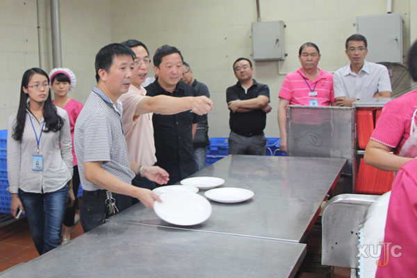 随后,雷锐生一行重点查看了北区食堂新添置的洗碗机,听取了相关人员对洗碗机运行模式的汇报,并现场校验洗碗机使用效果。他提出洗碗机末端复核人员要认真把关,对个别清理不彻底的餐具要及时处理。