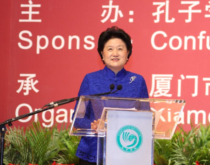 12月7日上午,第九届孔子学院大会在厦门国际会议中心海峡厅隆重开幕。中共中央政治局委员、国务院副总理、孔子学院总部理事会主席刘延东出席开幕式并致辞。开幕式由教育部部长、孔子学院总部理事会副主席袁贵仁主持。