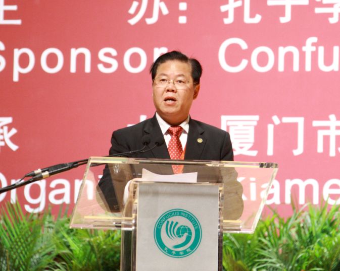 在致辞中代表福建省委、省政府向海内外嘉宾表示诚挚欢迎,向大会的召开表示热烈祝贺。他说,经过十年的建设和发展,孔子学院已经成为中国走向世界,世界了解中国的重要窗口,成为连接中国与世界的重要桥梁和纽带。我们将认真贯彻习近平主席、李克强总理对全球孔子学院建立十周年及首个全球孔子学院日的贺信和刘延东副总理重要讲话精神,一如既往地支持孔子学院的发展,为促进世界多元文明、多元文化包容互进,做出应有贡献。