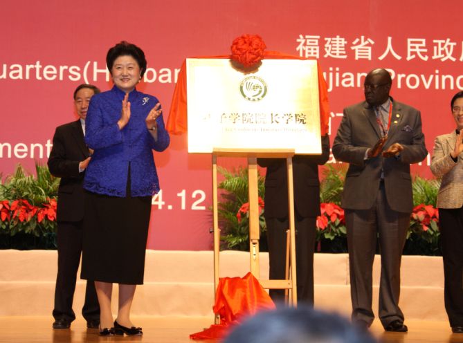 会上,刘延东为设在我校的孔子学院院长学院揭牌,并为2014年先进孔子学院奖、先进孔子课堂奖、孔子学院先进个人奖、先进中方合作院校奖和孔子学院开创者奖获得者颁奖。