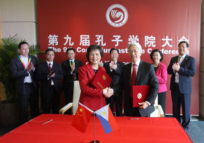 目前我校已与国外高校合作共建了15所孔子学院,菲律宾大学孔子学院将是我校建立的第16所孔子学院,也是全球第476所孔子学院。我校参与建设的孔子学院在创新中发展,为推动中外文化教育交流和合作提供平台,成为我校推动国际化、走向世界的桥梁和纽带。