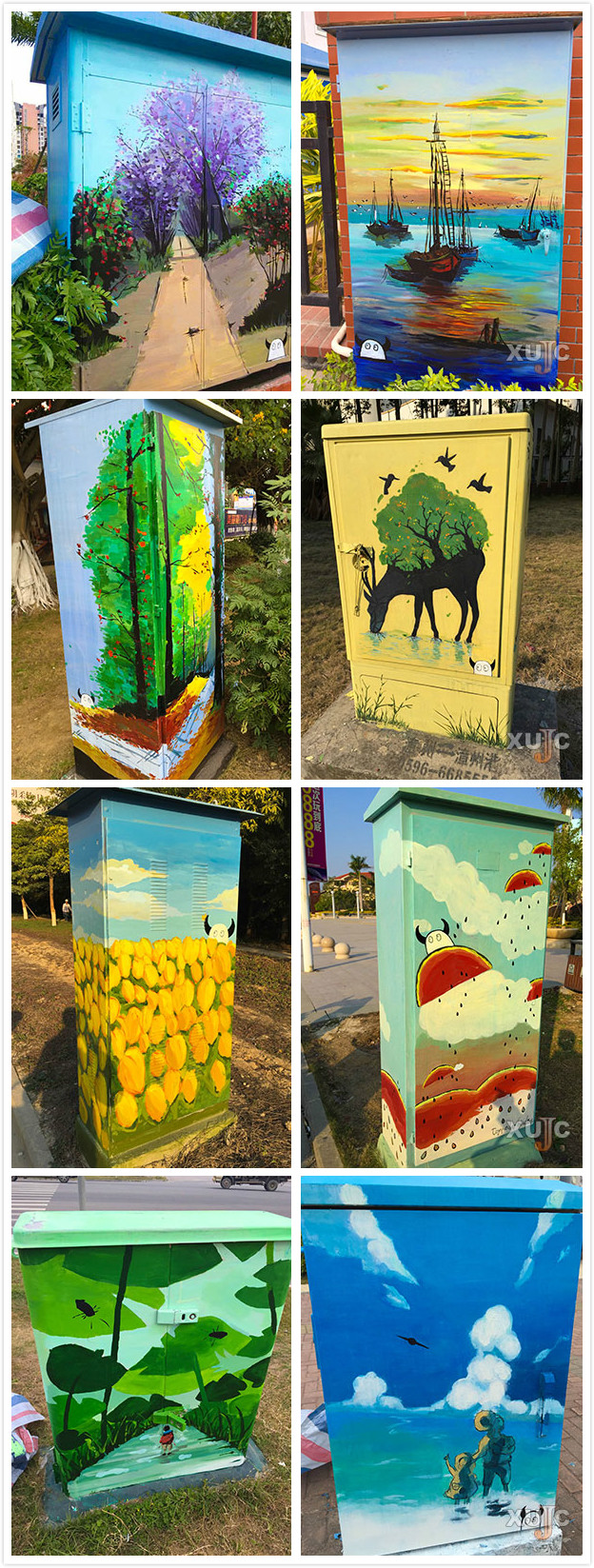 这是一个团队协作的过程,每一个配电箱的创作需要三到四个人通力合作才能完成。在作画的过程中,同学们合理分工,擅长画大轮廓的同学负责整体形状的把握,色彩感觉好的同学负责上色工作,较为细心的同学负责后期完善工作……为了色彩不易褪色,同学们选择了丙烯颜料进行作画。经过团队一个多月的努力,开发区街道上的配电箱换上了“新装”。