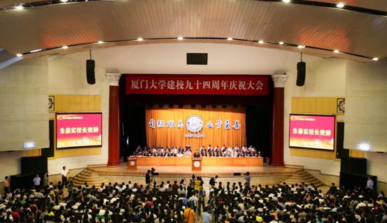 4月6日上午,学校在建南大会堂举行大会,隆重庆祝建校94周年。大会颁发了2015年校庆“南强杰出贡献奖”等各项奖教金、“嘉庚奖章”及各项奖学金,接受社会各界捐赠累计7000余万元。同时,厦门大学校友总会第十七届理事会正式宣告成立。