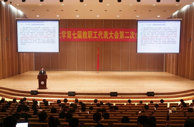 12月19日,校第七届教职工代表大会第二次会议在科学艺术中心召开。校党政领导、教代会正式代表、特邀代表和列席代表近400人出席会议。大会听取了校长朱崇实对《厦门大学“十三五”规划和远景规划(讨论稿)》、《厦门大学薪酬改革方案(审议稿)》、《厦门大学教职工处分暂行规定(审议稿)》所做的说明,经分组讨论后,对规划提出了修改意见和建议,审议通过了薪酬改革方案和处分暂行规定。校党委书记张彦在大会上讲话。校党委副书记、工会主席赖虹凯主持会议。