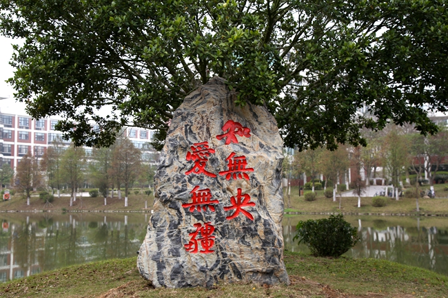 校歌石正面题有“知无央,爱无疆”六个大字,语出厦门大学校歌“致吾知于无央”、“充吾爱于无疆”,背面即为“知无央,爱无疆”题记。厦门大学创办伊始,校主陈嘉庚先生就将校训、办学理念和宗旨融入校歌。厦门大学校歌以其独特的个性,催人奋进的歌词,优美的旋律和雄伟的气势,激励着一代代厦大人自强不息。