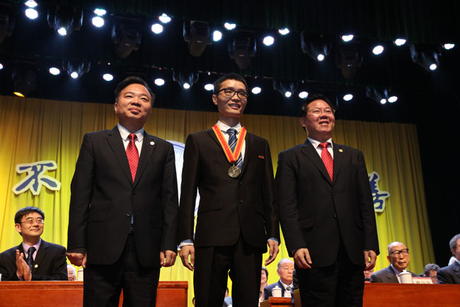 大会还举行了奖教金、奖学金颁奖仪式。副校长邬大光宣读了表彰决定。土地流转研究团队、手望手语志愿翻译服务团队、《哥德巴赫猜想》剧组和经济学院2012级博士研究生李江龙获学校“通令嘉奖”,万惠霖院士、吴宣恭教授获“南强杰出贡献奖”,李江龙获“嘉庚奖章”,261名教师、977名学生分别荣获2016年度厦门大学校庆期间各项校级奖教金、奖学金。校领导和嘉宾为获奖者颁奖。