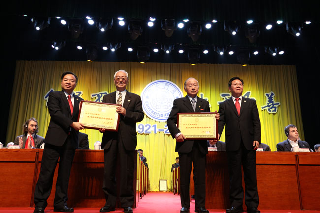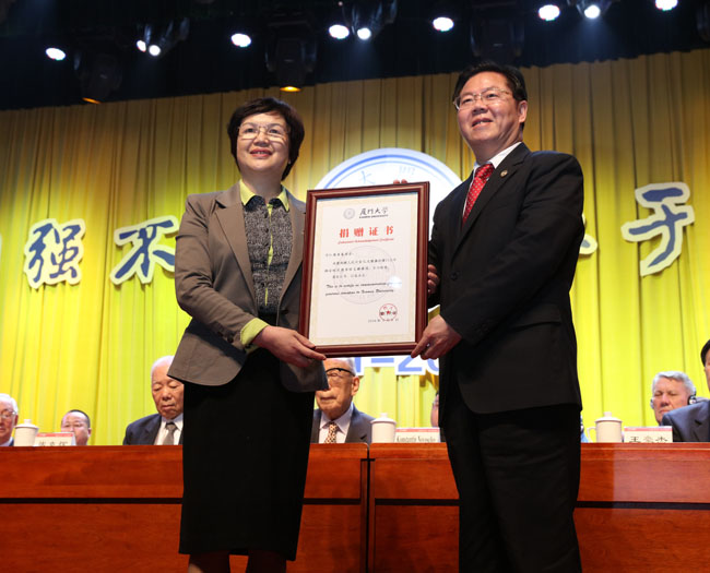 在我校95周年校庆之际,一批杰出校友、热心企业和人士以捐钱捐物的方式支持我校教育事业发展。校庆大会上,举行了12场简朴而隆重的捐赠仪式,以感恩的心情接受河仁慈善基金会、曾志龙校友、鹭燕(福建)药业股份有限公司、戴良业先生、单祥双教育慈善基金、养生堂有限公司、都市丽人(中国)控股有限公司、福建省圣农实业有限公司、热心人士李先生、胡精沛校友、朱德贞校友、华厦眼科医院集团有限公司对于厦门大学的无私馈赠和深厚情谊。校长朱崇实代表学校接受捐赠并向捐赠者颁发了捐赠证书。