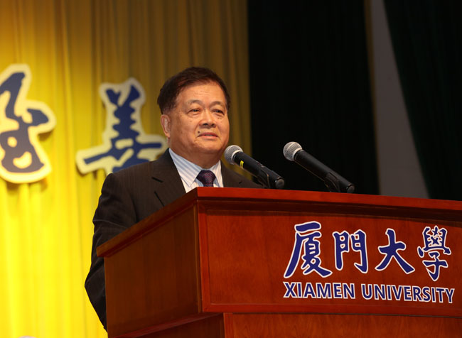 朱崇实说,建校之初,校主陈嘉庚先生就把“研究高深学问,养成专门人才,阐扬世界文化”作为学校的办学宗旨,确立“自强不息,止于至善”的校训精神,期望厦门大学能成为“南方之强”,能成为一所“为吾国放一异彩”,“能与世界各大学相颉颃”的一流大学。这一理想与愿景,一代又一代的厦大人始终牢记心中,锲而不舍为之奋斗。可以自豪的说,在95年的奋斗历程中,厦门大学在中国人民追求进步、追求光明、追求美好和幸福的征途上,从来没有掉队、没有落伍,始终站在队伍前列,取得一个个胜利。站在新的历史起点上,厦门大学不能落后,不敢落后,要与祖国一道,大踏步地走进世界,拥抱世界,与世界同行。