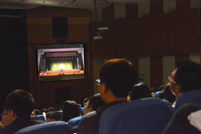 4月6日上午,漳州校区主三大报告厅内座无虚席,学生们注视着大屏幕,认真观看着厦门大学建校九十五周年庆祝大会的现场直播。除了校庆大会直播,一票难求的易中天教授学术讲座也设置了漳州校区分会场,通过现场直播方便校区学生感受学术大家的风范。