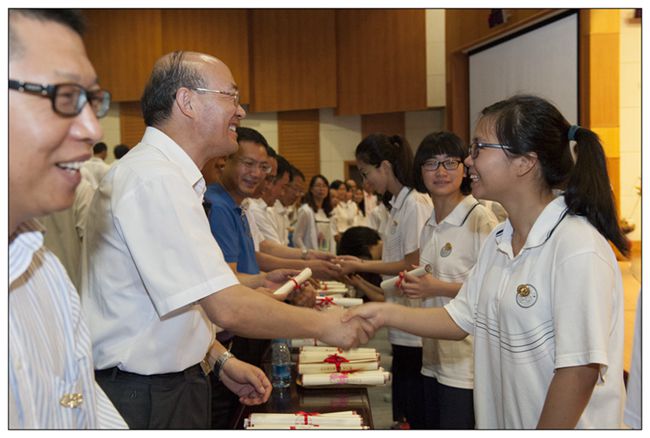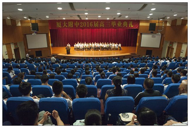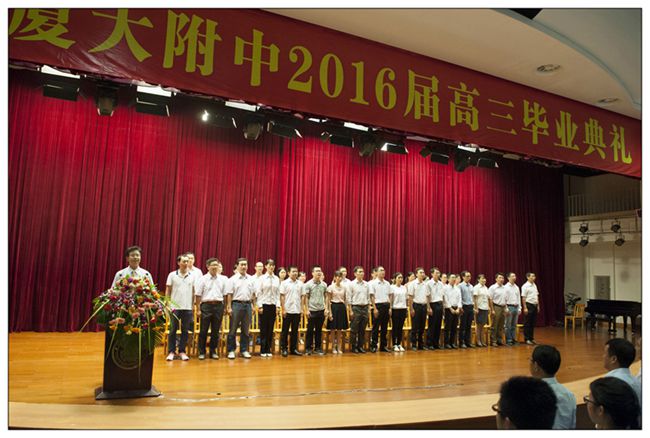 厦大附中2016届高三毕业生共有433位。本次毕业典礼有个特殊的群体,就是首届六年一贯制学生,他们在附中生活学习了六年,从懵懂孩童,到热血少年,特别的记忆留在师生彼此心中。有家长写道,“如父似母待犬子,授业育人长六载;为师之恩牢铭记,今生永做附中人。”也有家长撰写长联,“六载寒暑,春风化雨,青苗育成栋梁材。二千日夜,丹心热血,青丝熬出清秋霜!”教育的果实,是家长和学校握手的结果,附中将继续秉承培育良好教育服务品质的办学理念,服务学生,服务社会。